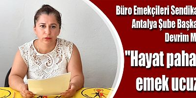 Büro Emekçileri Sendikası Antalya Şube Başkanı Devrim Mol yönetim kurulu üyeleriyle beraber açıklanan enflasyon rakamlar..
