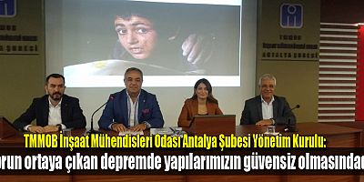 TMMOB İnşaat Mühendisleri Odası Antalya Şubesi Yönetim Kurulu Deprem Haftası nedeniyle bir basın açıklaması yayınladı...