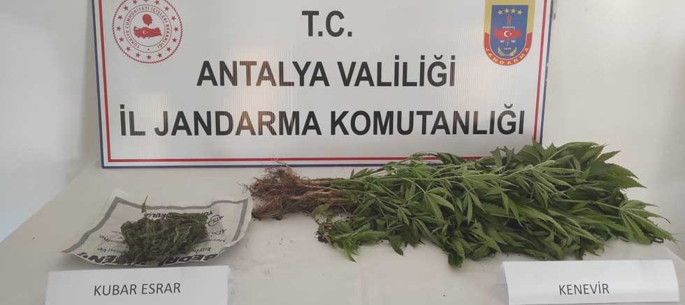 "Gazipaşa Cumhuriyet Başsavcılığı koordinesinde; Antalya İl Jandarma Komutanlığına bağlı Gazipaşa İlçe Jandarma Komutanlığı ekipleri tarafından Antalya ili, Gazipaşa ilçesi, Karalar Mahallesinde, M.G. isimli şahsın ikametinde kenevir ekimi yaptığı ve uyuşturucu madde bulundurduğu bilgisinin alınması üzerine düzenlenen operasyonda şüpheli şahıs ikametinde yakalanmıştır. Şahsın evinde ve eklentilerinde yapılan aramada;