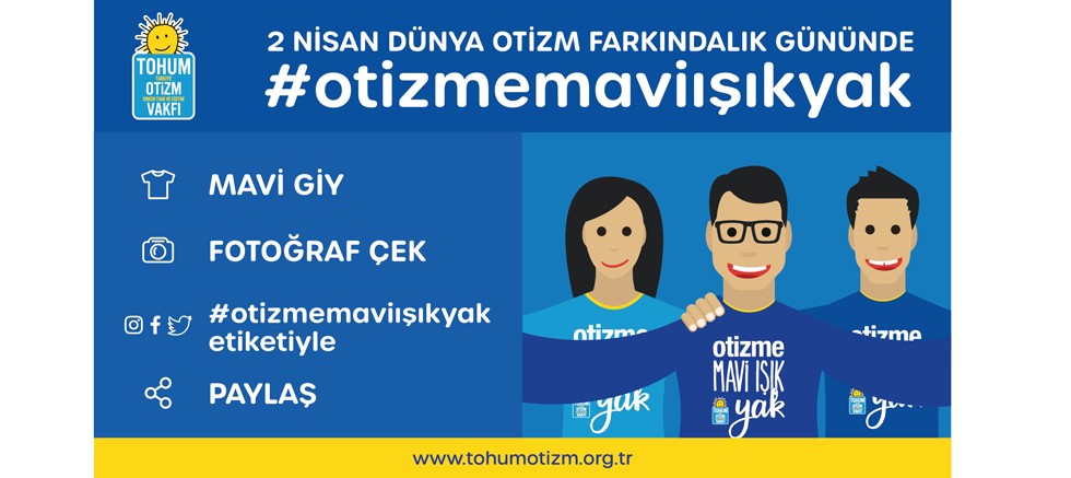 Tohum Otizm Vakfı’nın öncülüğünde, 2 Nisan Dünya Otizm Farkındalık Günü’nde Türkiye bir kez daha ‘Mavi’ye bürünecek. Otizme dikkat çekmek ve farkındalığı artırmak amacı ile tüm dünyada eşzamanlı düzenlenen ‘Otizme Mavi Işık Yak’ kampanyası kapsamında ülkemizdeki önemli ikonik yapılar 2 Nisan’da mavi ışıkla aydınlatılacak. Ayrıca vakfın çağrısı ile duyarlı bireyler de sosyal medya hesapları üzerinden #otizmemaviışıkyak etiketi ile otizmin farkında ve onların yanındayız mesajlarını paylaşacak. Siz de ‘Evde Kal’ çağrısının yapıldığı bu dönemde, evinizde otizme mavi ışık yakarak, bu anlamlı farkındalık hareketinin bir parçası olabilirsiniz.