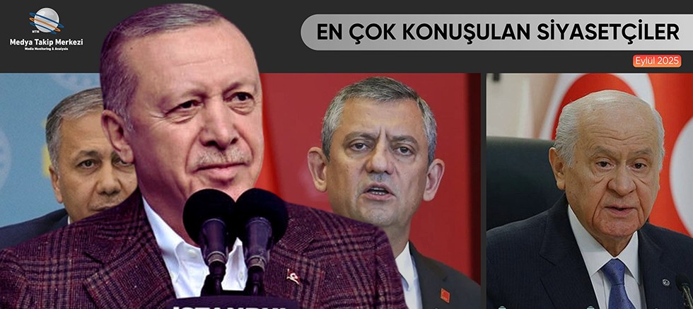 MTM Medya Takip Merkezi, Eylül 2025’te medya ve sosyal medyada en çok konuşulan siyasetçileri belirledi. Cumhurbaşkanı Recep Tayyip Erdoğan, her iki mecrada da zirvedeki yerini korurken; CHP Genel Başkanı Özgür Özel ikinci, İçişleri Bakanı Ali Yerlikaya ise üçüncü sırada yer aldı.