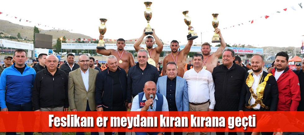 Konyaaltı Belediyesi bu yıl Feslikan Yaylası Yağlı Pehlivan Güreşleri’nin 24’üncüsünü düzenledi. Feslikan er meydanı kıran kırana mücadelelere sahne oldu. Finalde Konyaaltı Belediyesi Spor Kulübü güreşçisi Furkan Durmuş Altın ile ASAT Spor Kulübü güreşçisi Yusuf Can Zeybek karşılaştı. Mücadele başa baş gitse de Yusuf Can Zeybek ipi göğüsledi ve 24. Feslikan Yaylası Yağlı Pehlivan Güreşleri’nin başpehlivanı oldu. Yarı finalde rakibi İsmail Balaban’ı yenen Furkan Durmuş Altın ikinci olurken Mustafa Taş ve İsmail Balaban’da üçüncü oldu. Konyaaltı Belediye Başkanı Semih Esen ve protokol tribününde yer alan Antalya Büyükşehir Belediye Başkanı Muhittin Böcek, CHP Antalya İl Başkanı Nuri Cengiz, CHP Antalya Milletvekillerinden Aydın Özer, Cavit Arı, Konyaaltı Kaymakamı Kamil Köten 661. Kırkpınar Güreş Ağası Seyfettin Selim ve Feslikan Yaylası Güreş Ağası Mustafa Koç pehlivanları tebrik ederek, kupa ve madalyalarını takdim etti. Başaltı boyunda Konyaaltı Belediye Spor Kulübü güreşçisi Enes Doğan birinci olurken, küçükorta küçük boyda yine Konyaaltı sporcusu olan ikizlerden Rıza Durmuş birinci, ikizi İlker Durmuş üçüncü oldu.