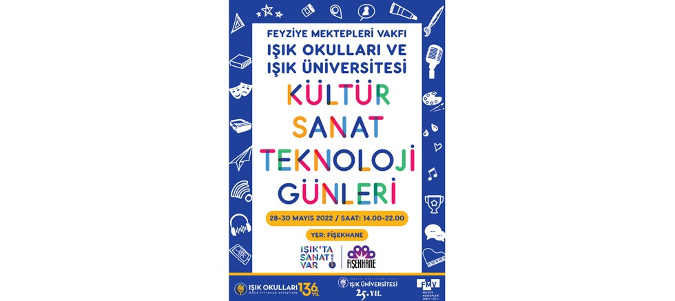 Feyziye Mektepleri Vakfı Işık Okulları ve Işık Üniversitesi’nin, 28-29-30 Mayıs 2022 tarihlerinde “Kültür, Sanat, Teknoloji Günleri” ismiyle düzenleyeceği etkinlik, sergiler, söyleşiler, atölyeler, teknolojik sunumlar ve konserler ile Fişekhane’de olacak.