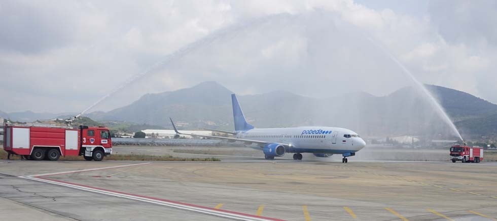 Bugün Rusya’nın başkenti Moskova’dan 180 yolcuyla gelen Pobeda Havayolları uçağı su takıyla karşılandı.