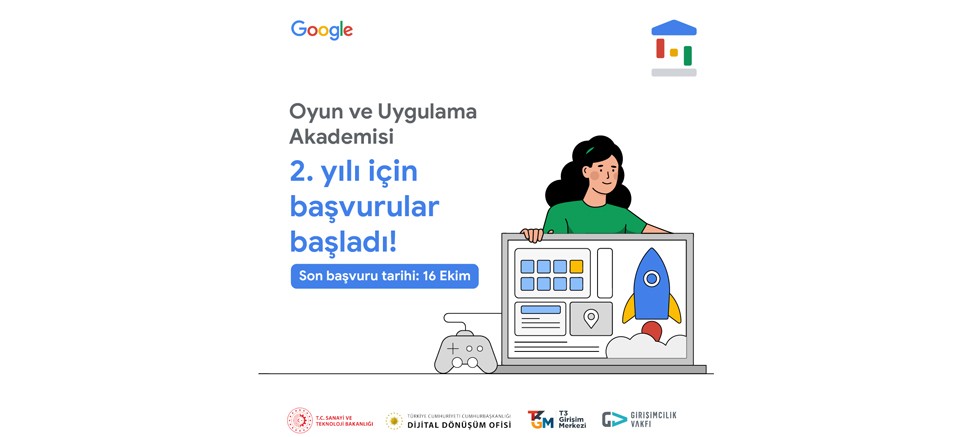 Google Türkiye, Girişimcilik Vakfı ve T3 Girişim Merkezi iş birliğinde, T.C. Sanayi ve Teknoloji Bakanlığı ve T.C. Cumhurbaşkanlığı Dijital Dönüşüm Ofisi destekleriyle Teknofest 2021’de hayata geçirilen Oyun ve Uygulama Akademisi dijital ekonominin büyümesine, 18-29 yaş arası üniversite öğrencisi veya mezunu gençlerin dijital becerilerinin gelişmesine, teknoloji sektöründe istihdamın artmasına ve teknoloji odaklı girişimlerin çoğalmasına katkı sağlama hedefiyle ikinci dönemine 1 Aralık 2022’de başlıyor.