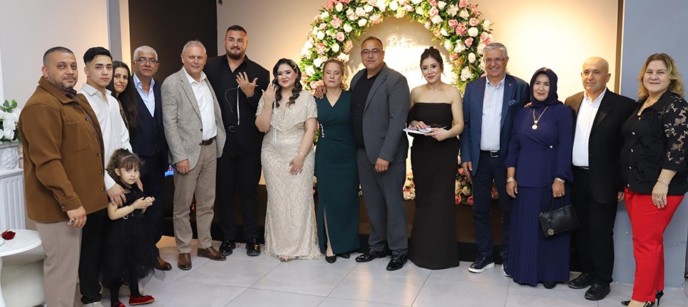 Kemer Belediye Başkanı Necati Topaloğlu, Kemer Belediye Güreşçisi Kemal Berke Kaya ile Nihal İrban'ın söz yüzüklerini takarak, genç çifti ve ailesini tebrik etti.