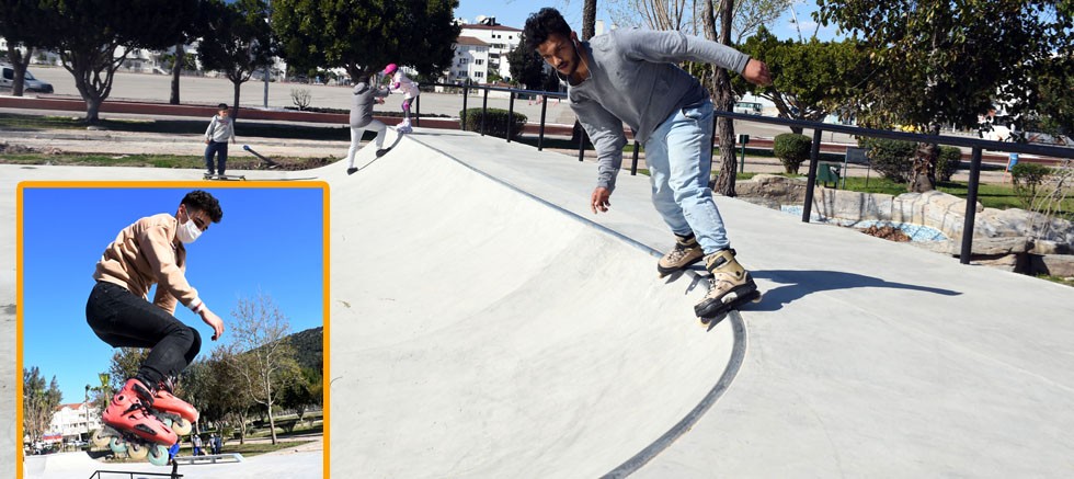 Kemer Belediye Başkanı Necati Topaloğlu’nun, Kemer'e ilk defa kazandırdığı skate parkında gençler eğleniyor.