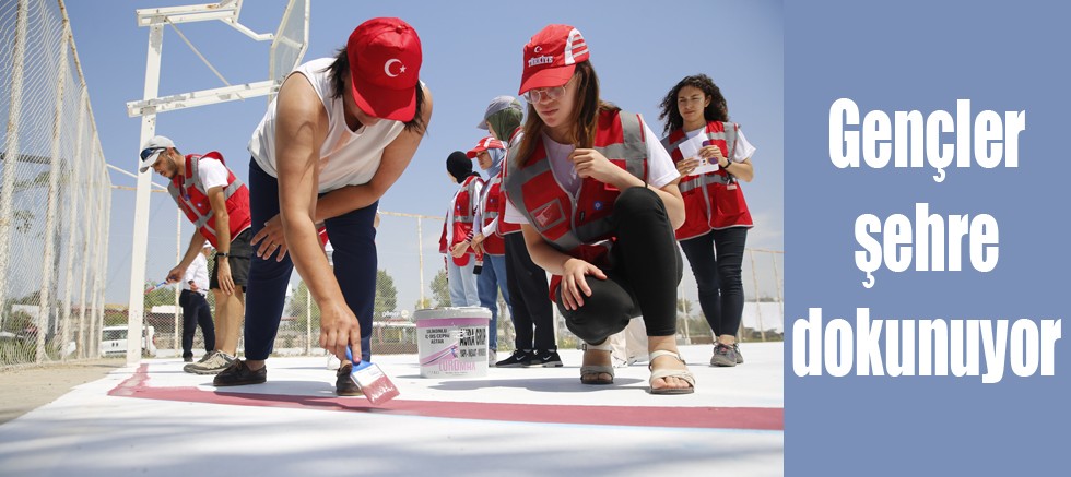 Antalya Büyükşehir Belediyesi tarafından yürütülen “Gençler Şehre Dokunuyor” etkinliği kapsamında genç gönüllüler Konyaaltı Sahili’ndeki basketbol sahalarını boyadı.