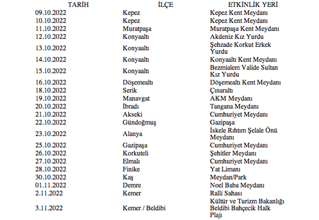 ETKİNLİK YAPILACAK İLÇELER VE TARİHLERİ: