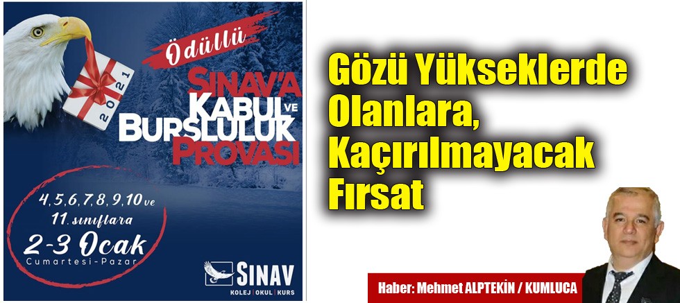 Kumluca Sınav Koleji, başarılı öğrencilere kapı aralıyor. Kolej yönetimi tarafından, Bursluluk ve Kabul sınavı için yapılan açıklamada şu ifadelere yer verildi;