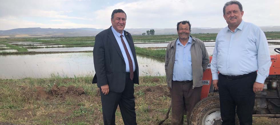 CHP Niğde Milletvekili Ömer Fethi Gürer ve Antalya Milletvekili Aydın Özer çeltik ekilen tarlalarda, çeltik üreticilerinin sorunlarını dinledi.