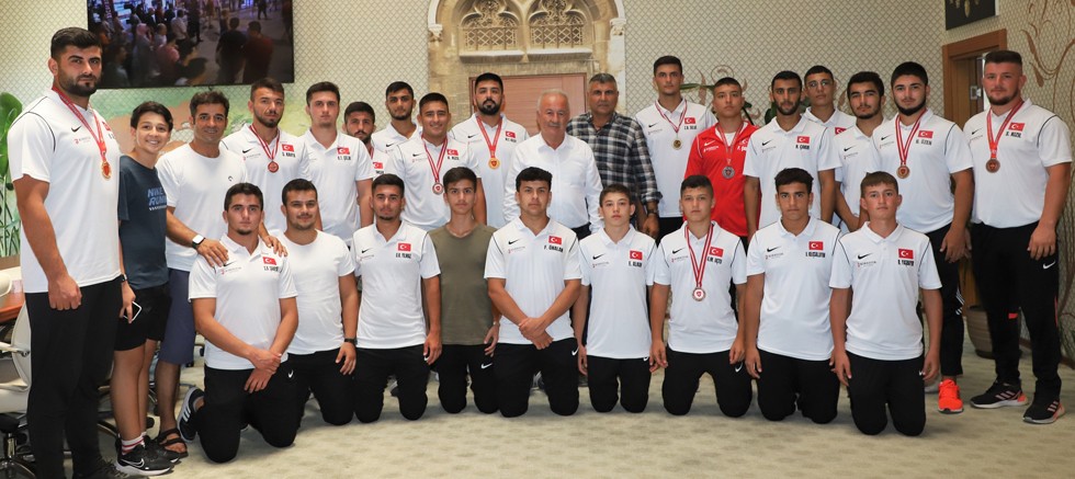 Güreş Takımı, 662. Kırkpınar Yağlı Pehlivan Güreşleri ile Kütahya’nın Domaniç ilçesinde gerçekleştirilen tarihi Domaniç Yağlı Pehlivan Güreşleri’nin ardından Belediye Başkanı Halil Şahin’i makamında ziyaret etti. Tarihi Domaniç Yağlı Pehlivan Güreşleri’nden 6 bronz ve 2 gümüş madalya toplamda 8 madalya ile dönen güreşçileri tebrik eden Başkan Şahin ziyarette yaptığı konuşmada şunları söyledi;