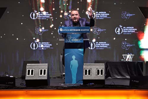 Antalya Büyükşehir Belediye Başkanı ve Festival Başkanı Muhittin Böcek yaptığı konuşmada; “Geleneksel kortejimizle başlayan festivalimizin coşkusu güzel şehrimizden güzel ülkemize dalga dalga yayıldı. Sanatçılarımızla, yurtiçi ve yurtdışından gelen yüzlerce konuğumuzla hemşerilerimizle birlikte çok güzel bir hafta geçirdik. Sokaklarda buluştuk, salonları sinema aşkıyla doldurduk. Sanatla iyileştik, çoğaldık, sevgiyle kucaklaştık. İyi ki varsın Altın Portakal. İyi ki varsın sinema. Yaşadığımız her gün aldığımız kararların ne kadar doğru olduğunu gördük. Çünkü Türk sineması olmadan, sanatçılarımız olmadan Altın Portakal olamaz, o kendi değerleriyle güzeldir, kendi değerleri ile anlamlı. Onun için bir tarihtir, yaşı yarım asrı geçen bir çınardır, o özüyle bir dünya markasıdır. Ülkemizin uluslararası alandaki gurur kaynağıdır. 59 yıllık tarihiyle bizi kucaklayan Altın Portakal bugün bir kez daha sanatçılarımızın emeklerini taçlandıracak. Şimdiden ödül alacak tüm sanatçılarımızı yürekten kutluyorum,” dedi.