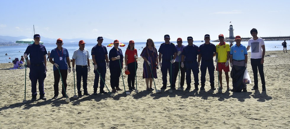Alanya Belediyesi plajda deniz çöpleri izleme programı kapsamında kategorize çalışması yaptı