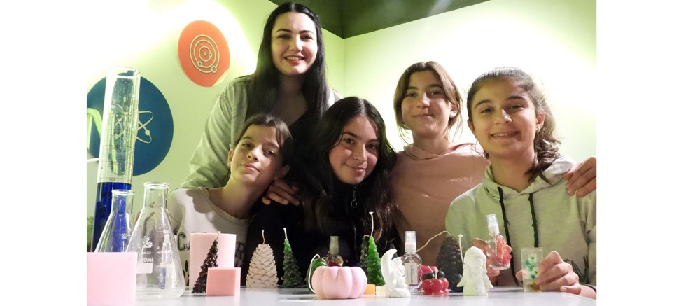 Antalya Bilim Merkezi’nin Fen Bilimleri Atölyesini tercih eden öğrenciler, ebeveynlerine özel parfüm, kolonya, kokulu mumlar üretiyor.