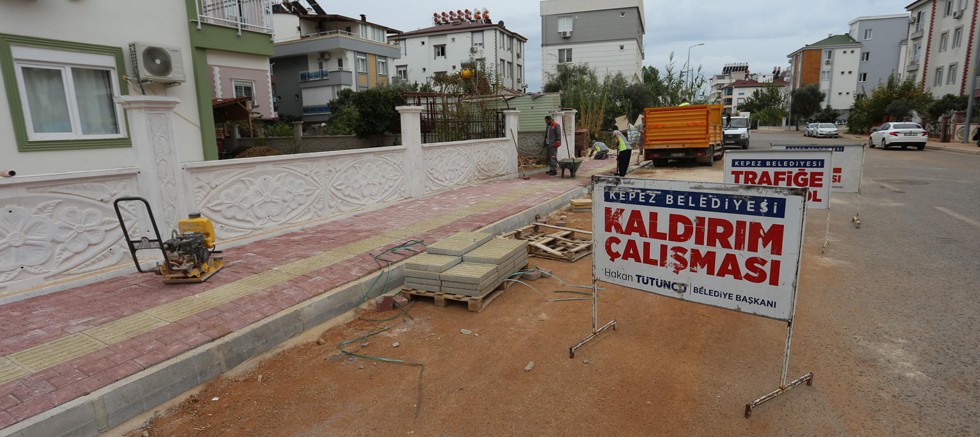 Kepez Belediyesi Fen İşleri Müdürlüğü ekipleri, Mehmet Akif Ersoy Mahallesi 6761 sokak üzerinde kaldırım çalışmalarını sürdürüyor. Engelli bireylerin yaya güvenliği içinde kaldırıma takip parke taşları döşeniyor.
