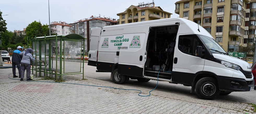 Temizlik İşleri Müdürlüğü ekipleri, açık ve kapalı otobüs duraklarının iç, dış temizliğini gerçekleştiriyor. Otobüs duraklarının camları ve oturma alanları sabunlu suyla yıkanarak, temizleniyor. Bu şekilde duraklar vatandaşların kullanımı için daha sağlıklı hale getiriliyor. Otobüs duraklarının temizliğinde belediyenin kısa bir süre önce bünyesine kattığı teknolojik tam donanımlı Mobil Cami ve İbadethane Temizlik Aracı kullanılıyor. Ekipler tarafından ilk olarak otobüs duraklarının camları ve oturma alanları sabunlanırken, tazyikli su ile yıkanıyor.