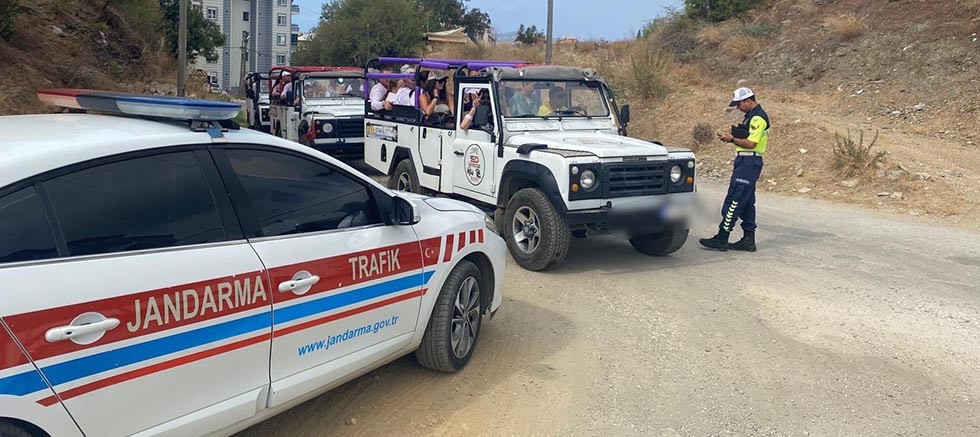 "Antalya İl Jandarma Komutanlığı Trafik Şb. Md.lüğü koordinesinde Alanya İlçe J.K.lığı Trafik Jandarması timlerince Alanya ilçesi Oba, Çıplaklı ve Değirmendere Mahallelerinde (45) safari aracı ve sürücüsü kontrol edilmiştir. Yapılan denetimde; (15) aracın eksikleri tespit edilerek Cezai işlem uygulanmıştır.