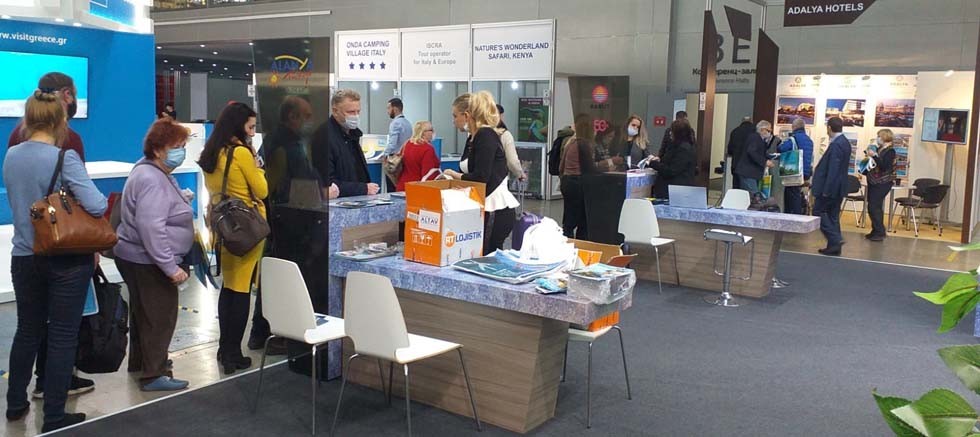 Pandemi kuralları çerçevesinde yapılan fuarda Ruslar, ‘Küçük Moskova’ olarak anılan Kemer’e yoğun ilgi gösterdi.