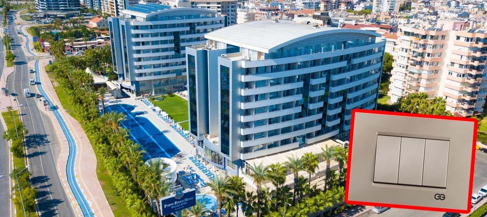 Türkiye’nin birçok bölgesinde önemli gayrimenkul çalışmalarında yer alan Günsan Elektrik, Antalya’da yer alan Porto Bello Hotel Resort & Spa ve Öz Kaymak Hotel projesinin elektrik anahtarı tasarımını üstlendi. Her iki projede de Domino serisinin üçlü çerçeveden oluşan elektrik anahtarları yer aldı. Porto Bello Hotel Resort & Spa’da metalik bej, Öz Kaymak Hotel’de ise bronz füme rengi kullanıldı.