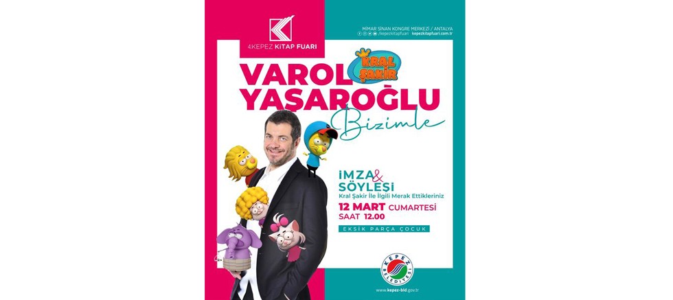 Kepez Belediyesi’nin bu yıl 4’ncüsünü düzenleyeceği Kepez Kitap Fuarı, Mimar Sinan Kongre Merkezi’nde birbirinden seçkin isimleri ağırlayacak. Bu yıl “Oku” temasıyla düzenlenecek olan Kepez Kitap Fuarı’nda, en çok izlenen Türk animasyonu olan Kral Şakir’in çizeri Karikatürist ve animasyon yapımcısı Varol Yaşaroğlu, hayranlarıyla bir araya gelecek. Yaşaroğlu, 12 Mart Cumartesi günü saat 12.00’da düzenlenecek imza ve söyleşi gününde birçok ülkede dünya çocuklarının izlediği Kral Şakir ile ilgili merak edilenleri anlatacak. Türkiye, Kral Şakir’in çizeri Varol Yaşaroğlu’nu, Koca Kafalar, Fırıldak Ailesi, Mikrop Necati gibi hafızalara kazınan mizah, karikatür ve animasyon yapıtlarıyla tanımıştı.