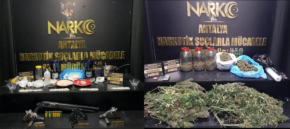 Antalya Cumhuriyet Başsavcılığı koordinesinde, Narkotik Suçlarla Mücadele Büro Amirliği tarafından Haziran ayında yapılan operasyonlar kapsamında; 622 uyuşturucu madde olayında, 694 şahsa adli işlem yapıldığı belirtildi. Ayrıca şüpheli şahıslara ait ikamet adresleri ve araçlarında yapılan aramalarda; 38,500 gram esrar, 5000 gram skunk, 2000 gram eroin, 2000 gram metamfetamin, 2500 gram kokain, 6000 adet ecstasy maddesi, 420 adet kâğıda emdirilmiş sentetik kannabinoid (A4) madde, 500 kök kenevir bitkisi, 32 adet hassas terazi, 12 adet silah, 225 adet fişek ile uyuşturucu madde ticaretinden elde edildiği değerlendirilen döviz ve Türk Lirası cinsinden nakit paranın ele geçirildiği vurgulandı.