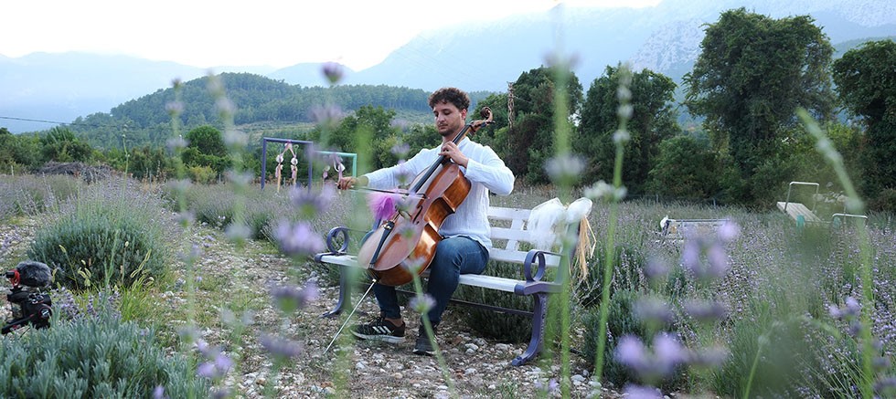 Çellist Emir Asil, Gedelme Yaylası’ndaki Kemer Belediyesi’ne ait lavanta bahçesinde lavanta tanıtım etkinlikleri kapsamında çello çaldı.