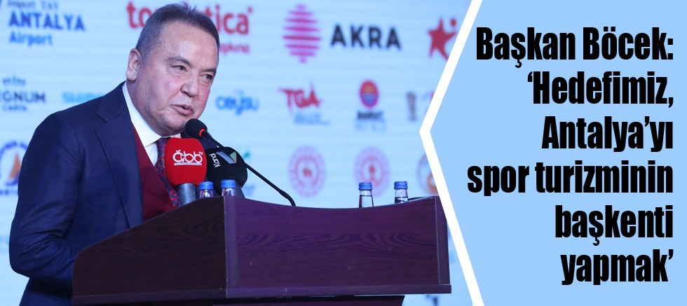 Bu yıl 4’üncüsü düzenlenecek Antalya Bisiklet Turu ‘Tour Of Antalya’ tanıtım toplantısında konuşan Büyükşehir Belediye Başkanı Muhittin Böcek, hedeflerinin Antalya’yı spor turizminin de başkenti yapmak olduğunu söyledi.