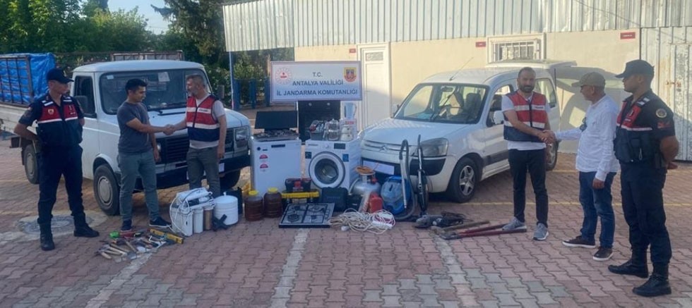 Şüphelinin çalmış olduğu beyaz eşyalar ile diğer ev eşyalarını Antalya il merkezinde U.A. isimli şahsa sattığı tespit edilmiştir. Ele geçen suç eşyaları geri alınarak, sahipleri olan müştekilere teslim edilmiştir. Şüpheliler U.A ve İ.T. hakkında gerekli adli işlemlere başlanılmıştır. Antalya İl Jandarma Komutanlığınca vatandaşlarımızın huzur ve güvenliğini sağlamaya yönelik çalışmalara ara vermeden devam edilmektedir.