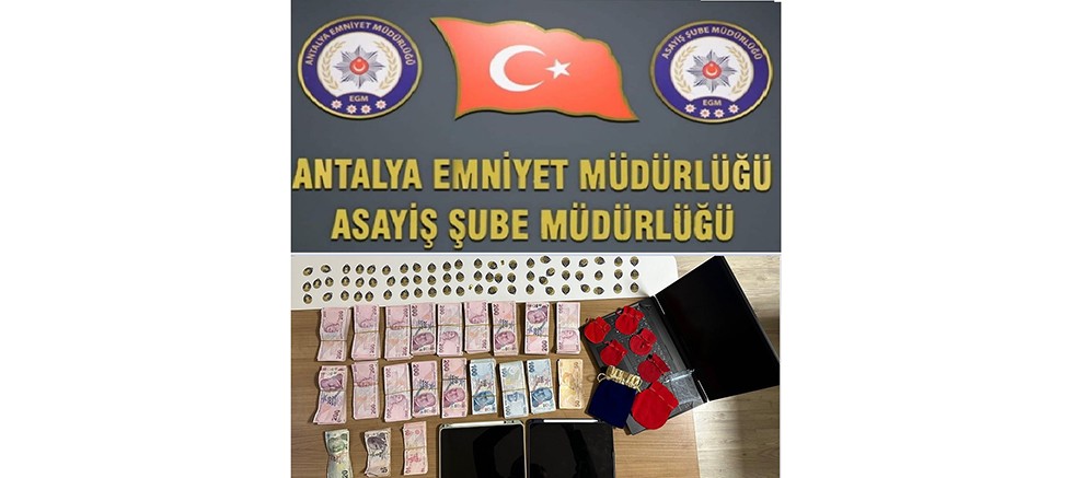 Antalya Emniyet Müdürlüğü'nden yapılan açıklamada şöyle denildi: "Emniyet Müdürlüğümüz Asayiş Şube Müdürlüğümüz görevlilerince, ilimiz Muratpaşa İlçesinde faaliyet gösteren kuyumculara sahte altın satılarak kuyumcuların dolandırılması olayı ile ilgili olarak yapılan çalışmalarda;