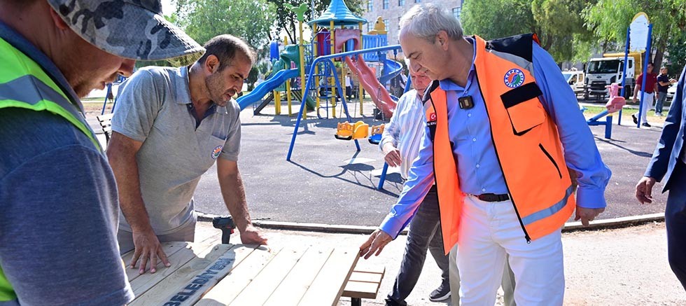 Kepez Belediye Başkanı Mesut Kocagöz, belediye ekiplerinin mahallelerde yürüttüğü hizmet çalışmalarını yerinde inceledi. Konforlu bir Kepez için çalışan belediye ekiplerine kolaylıklar dileyerek, hizmetlerinden dolayı teşekkür etti. Baştan aşağıya yenilenen Eren Parkı’nı gezen Başkan Kocagöz, özellikle masa ve bankların köşe kısımlarını eliyle inceleyerek, çocukların güvenliği için köşelerin sivri olmamasına dikkat edilmesini istedi. Kepez’in hizmet çalışmalarını değerlendiren Başkan Kocagöz, “Şuana kadar 100 bin metre kare park alanımız ekiplerimiz tarafından yenilendi. Bu alan yaklaşık 30 taneden fazla park demek. Çalışma yapacağımız mahalleye 100 ile 150 ekiple beraber gidiyoruz. Bir mahalleye gittiğimizde sadece parkları değil, yollarına varana kadar aklınıza gelen her şeyiyle baştan aşağıya yeniliyoruz. Konteynerleri yıkıyoruz, yolları yıkıyoruz. Ekiplerimiz gittikleri mahallede A’dan Z’ye kadar her türlü çalışmayı gerçekleştiriyor. Vatandaşlarımızın böyle bir hizmet görmediklerini ifade etmeleri ise bizleri ziyadesiyle mutlu ediyor. Durmak yok, biz çalışacağız ve daha çok çalışacağız. Halkımız bize güvendiler bizde halkımıza layık olmaya çalışacağız” dedi.