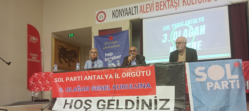 Sol Parti Antalya İl Örgütünün 3. Olağan Genel Kurulu 13 Nisan Pazar günü Konyaaltı Alevi Bektaşi Cemevi Derneği Kongre Salonunda yapıldı.