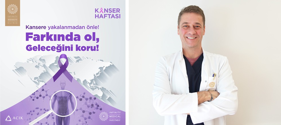 Kanserle ilgili koruyucu tıp uygulamalarıyla her üç vakadan en az birinin önlenebildiğini söyleyen Infinity Regenerative Clinic Medikal Direktörü Onkoloji Uzmanı Dr. Yıldıray Tanrıver; Infinity Regenerative Clinic’te uygulanan TTK (Tetkik Tarama Konsültasyon) ve kanserden koruyucu program hakkında bilgi verdi.