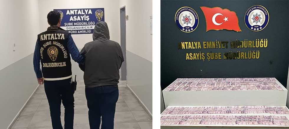 "Emniyet Müdürlüğümüz Asayiş Şube Müdürlüğüne müracaatta bulunan Y.İ. isimli müşteki; tanımadığı bir kişi tarafından arandığını, arayan kişinin telefonda kendisini polis olarak tanıttığını, kimlik bilgileri ile suç işlendiğini söyleyerek baskı altındaki yönlendirmelerle Manavgat ilçesinde bulunan yaklaşık 32 Milyon TL değerindeki 4 adet arsasını sattığını, parayı 2 farklı tarihte kendisini polis olarak tanıtan şahsa Kumluca ve Finike ilçelerinde elden teslim ettiğini beyan ederek şikayetçi olması üzerine, şüpheli şahsın yakalanmasına yönelik yapılan çalışmalarda;