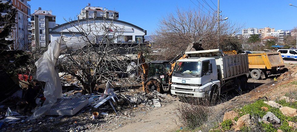 Kepez Belediyesi Çevre Sağlığı Müdürlüğü ekipleri, mahallenin 7 farklı adresinde yaptığı tespit sonucunda, 'gece kondu mesken evinizin bahçesinde depolamış olduğunuz hurda ve benzeri malzemeleri bulunduğu yerden kaldırmanız gerekli görülmüştür' yazısıyla ihtarname verdi. Tebliğ edilen ihtarnameye rağmen atıkların toplanmaması üzerine, belediye ekipleri polis eşliğinde harekete geçti.