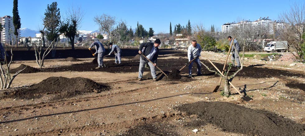 Kepez Belediyesi Park ve Bahçeler Müdürlüğü, Hüsnü Karakaş Ay Deresi çevresinde tohum ve toprak serim çalışması gerçekleştirdi.