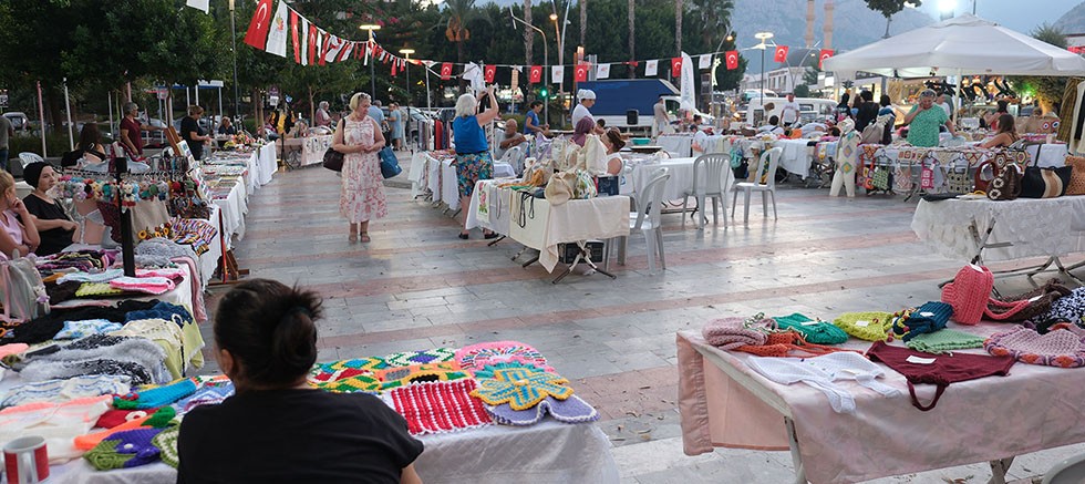 Kemer Belediye Başkanı Topaloğlu'nun girişimleri ile Marifetli Eller Platformu ve Üreten Ev Hanımları Kooperatifi tarafından düzenlenen ve Kemer'de yaşayan ev hanımlarının aile ekonomisine katkı sağlamasının amaçlandığı kermese yerli ve yabancı tatilciler de büyük ilgi gösterdi.