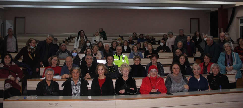 "Akdeniz Üniversitesi Yaşlılık Çalışmaları ve Uygulama Merkezi 60 yaş ve üzeri bireylere sağlıklı ve başarılı yaşlanma eğitim ve öğretim programı 60+ Tazelenme Üniversitesi projesi kapsamında, Trafik Denetleme Şube Müdürlüğümüz trafik eğiticileri tarafından Akdeniz Üniversitesinde ‘Trafik Güvenliği’ hakkında ilk ders eğitimleri verilmiştir.