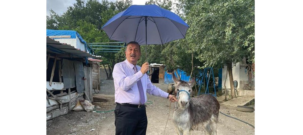 Anadolu Birliği Partisi (ABP) Başkanı Bedri Yalçın, zam yağmuruna tepki göstererek şemsiye açtı. Ek Motorlu Taşıtlar Vergisine de eşekle gönderme yapan Yalçın, “Arabaya binmek hayal oldu. Bundan sonra eşekle ulaşım sağlayacağız” dedi.
