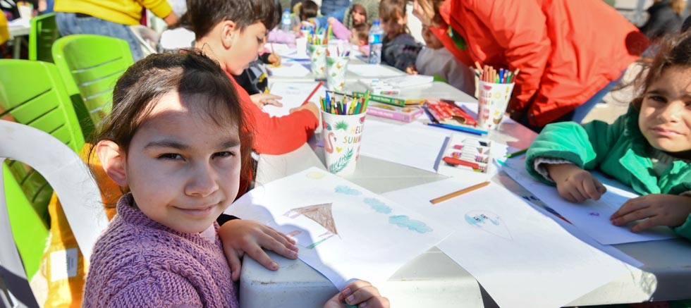 Belediye diğer yandan merkeze gelen çocuklar için de ASSİM bahçesinde bir oyun alanı kurdu. Çocuk gelişim uzmanları ve psikologların gözetimindeki oyun alanında çocukların dünyası kendilerine verilen boyama kalemleri, kağıtlar ve oyuncaklarla bir anda değişti. Yüzlerine küçük de olsa bir gülümseme gelen çocukların rengarenk kalemlerle evler çizmesi ise herkesi duygulandırdı.