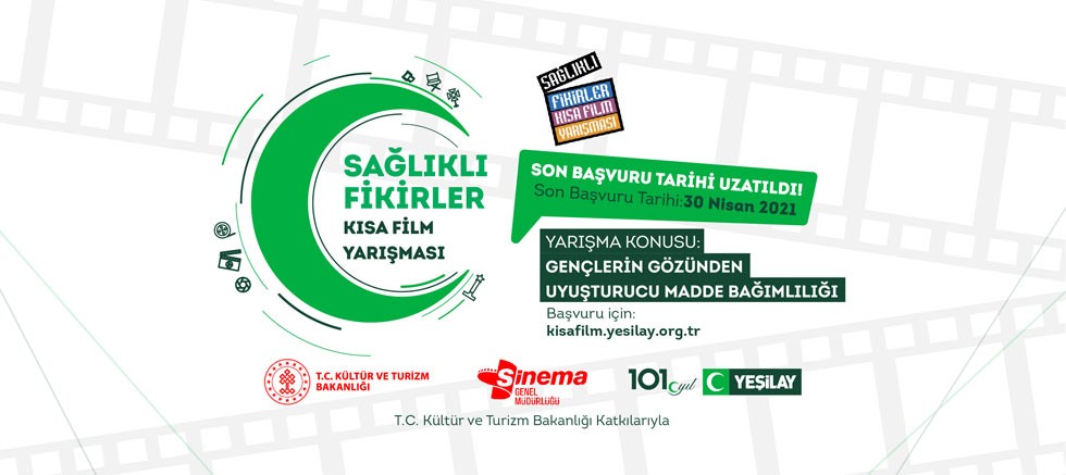 Yeşilay’ın düzenlediği Sağlıklı Fikirler Kısa Film Yarışması’nın son başvuru tarihi 30 Nisan’a ertelendi. T.C. Kültür ve Turizm Bakanlığı desteğiyle 5’inci kez düzenlenen yarışma, bu yıl “Gençlerin Gözünden Uyuşturucu Bağımlılığı” temasıyla gerçekleşiyor. Yarışmaya, Türkiye genelinde lisans ve yüksek lisans düzeyinde eğitim gören tüm öğrenciler, kurmaca veya belgesel türünde eserleriyle katılabiliyor.