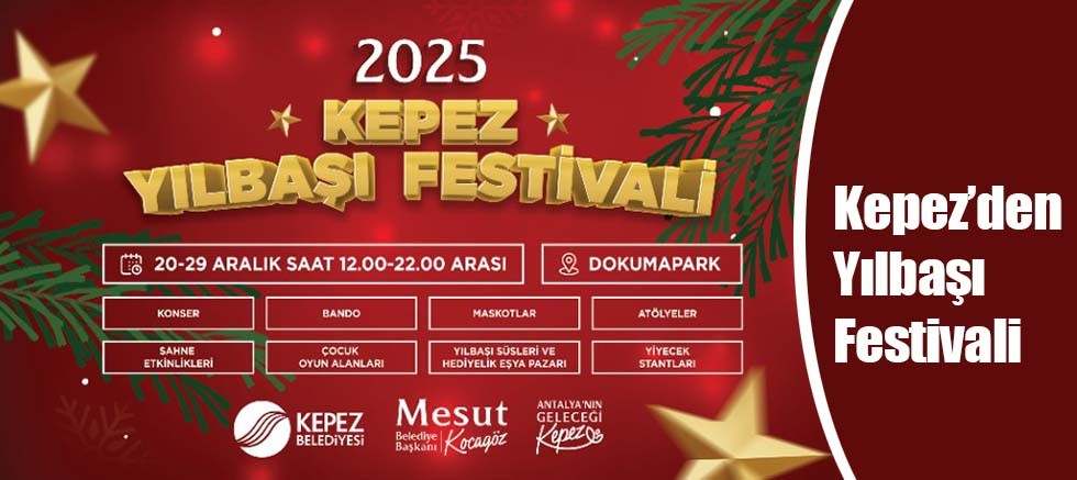 Kepez, 2025 yılına renkli bir festivalle ‘merhaba’ diyecek. Kepez Belediyesi’nin, 20-29 Aralık tarihlerinde DokumaPark'ta gerçekleştireceği Yılbaşı Festivali, Antalyalıları birbirinden eğlenceli ve renkli etkinliklerle buluşturacak. Her gün saat 12.00 ile 22.00 arasında kapılarını açacak olan festival, konserler, bando gösterileri, maskotlar, atölye çalışmaları, sahne etkinlikleri ve çocuk oyun alanları ile dolu dolu bir programla ziyaretçilerini karşılayacak. Yılbaşı süsleri ve hediyelik eşya pazarında ise birbirinden güzel eşyalar satışa sunulacak. Ayrıca yiyecek stantları da festivale lezzet katacak. Her yaşa hitap edecek olan festival de, çocuklar için özel oyun alanları oluşturulacak ve renkli etkinlikler düzenlenecek.