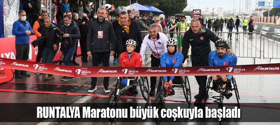 Bu yıl 17’nci kez düzenlenen ve 25 ülkeden 1200’ü sporcu olmak üzere 10 bin sporseverin katıldığı Runtalya Maratonu büyük coşkuyla başladı. Maratona Vali Ersin Yazıcı’nın yanı sıra Antalya Büyükşehir Belediye Başkanı Muhittin Böcek, Vali Yardımcısı Yalçın Sezgin, Konyaaltı Belediye Başkanı Semih Esen, Muratpaşa Belediye Başkanı Ümit Uysal, Türkiye Atletizm Federasyonu Başkanı Fatih Çintimar, Gençlik ve Spor İl Müdürü Yavuz Gürhan, sporcular ve çok sayıda vatandaş katıldı.