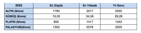 2023 kıymetli madenler için pozitif bir yıl olacak