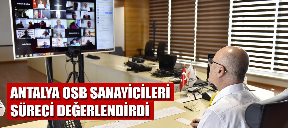 Antalya OSB sanayicileri Başkan Ali Bahar önderliğinde video konferans sistemiyle bir toplantı gerçekleştirdi. Koronavirüs pandemisinin etkilerinin değerlendirildiği toplantıda ekonomik koşulların, kısıtlamaların ve piyasalardaki belirsizliğin halen firmaları zorladığı ancak vaka sayılarındaki düşüş ve buna bağlı olarak bazı kısıtlamaların kaldırılarak hayatın normalleşmeye başlamasının umut verici olduğu kaydedildi.