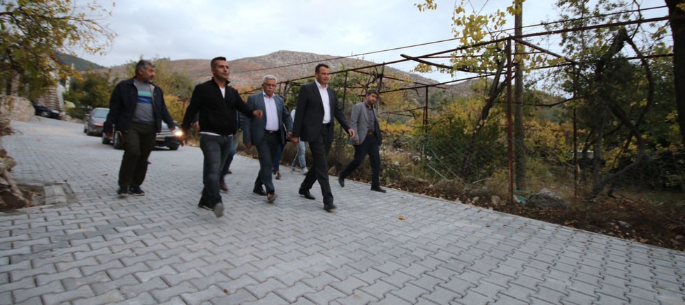 Kaş Belediyesi kırsal mahallelerdeki yolları modern görünüme kavuşturmak için kilit parke taşı çalışması gerçekleştiriyor.