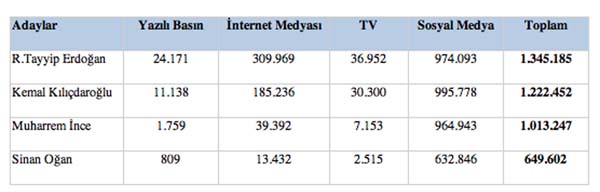 MTM’nin dijital ve konvansiyonel medya araştırmasına göre aday yarışı medyaya şu şekilde yansıdı;