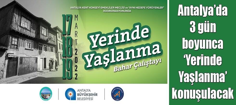 Antalya Kent Konseyi Emekliler Meclisi koordinasyonunda, Büyükşehir Belediyesi ve Akdeniz Üniversitesi işbirliği ile düzenlenecek “Yerinde Yaşlanma” Bahar Çalıştayı 17 Mart Perşembe günü Atatürk Konferans Salonu’nda yapılacak açılış töreniyle başlıyor.