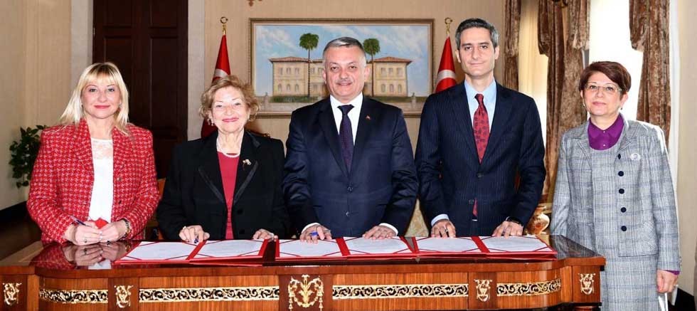 Okul Protokolü’nün imzalanmasının ardından Vali Ersin Yazıcı, hayırsever Gönül Peçen ve kızı Sinem Peçen ile hatıra fotoğrafı çektirdi.