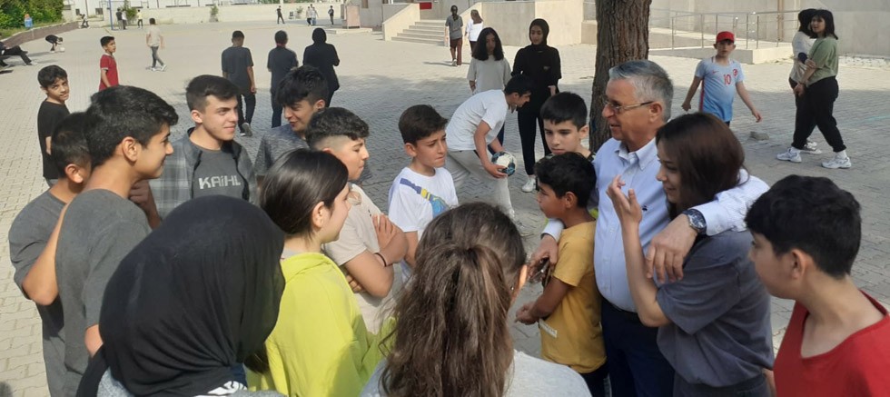 Öğretmen ve öğrencilerle sohbet eden Belediye Başkanı Topaloğlu, öğrencilere derslerinde başarılar, öğretmenlere de kolaylıklar diledi.